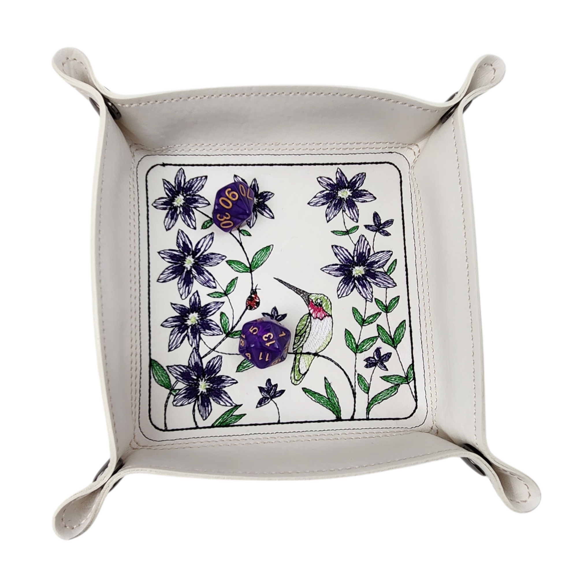 Hummingbird & Purple Flower Dice Tray for TTRPGs