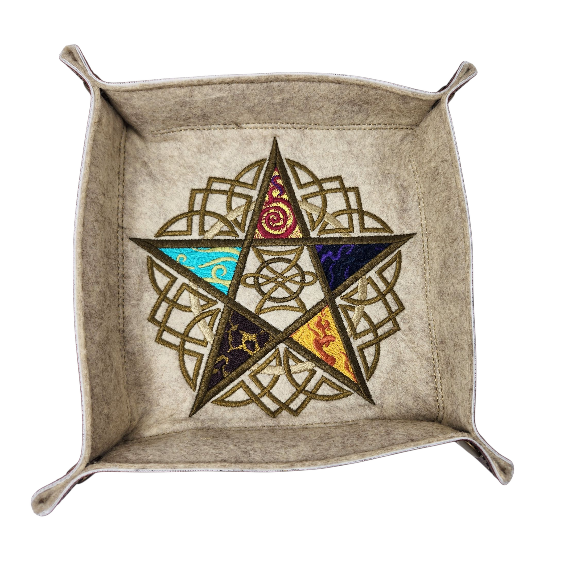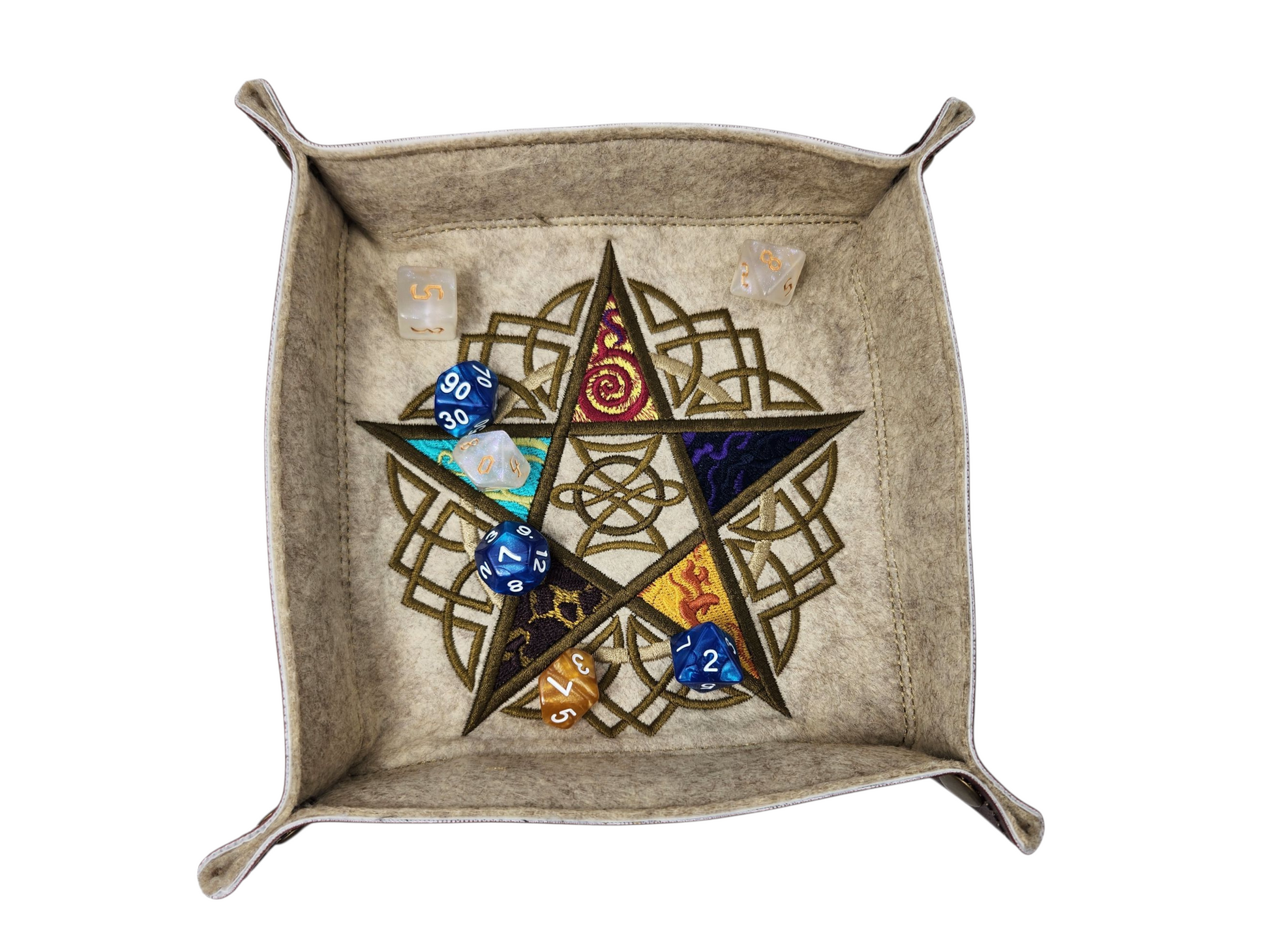 **🌪️ **Unleash the Elements:** Our magnificent dice tray features the five elemental symbols of wind, earth, fire, water, and magic, serving as a mystical canvas for your dice-rolling rituals. It's not just a tray; it's a portal to the realms of fantasy!