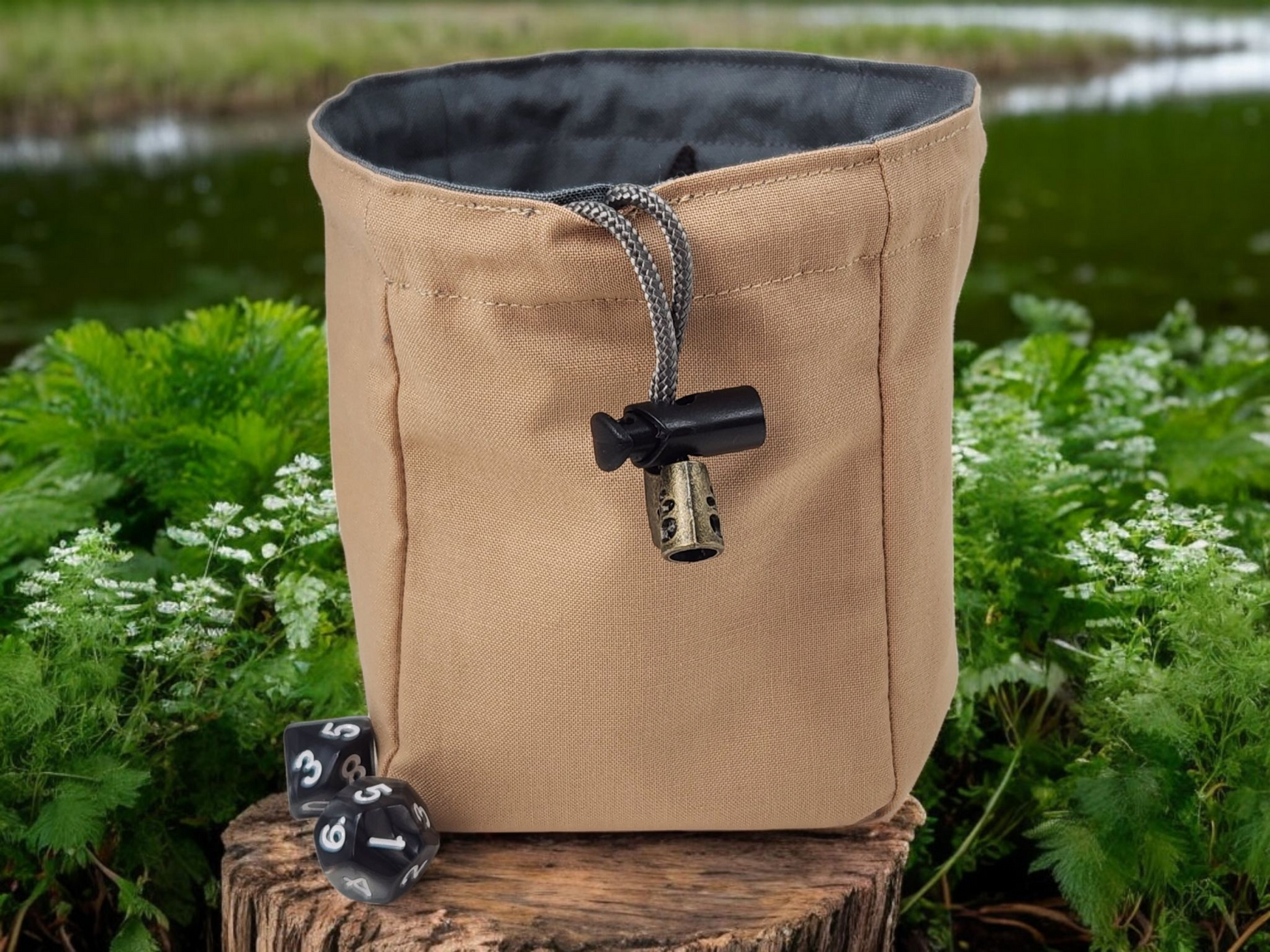 * The flat bottom enables dice bag stand by itself.