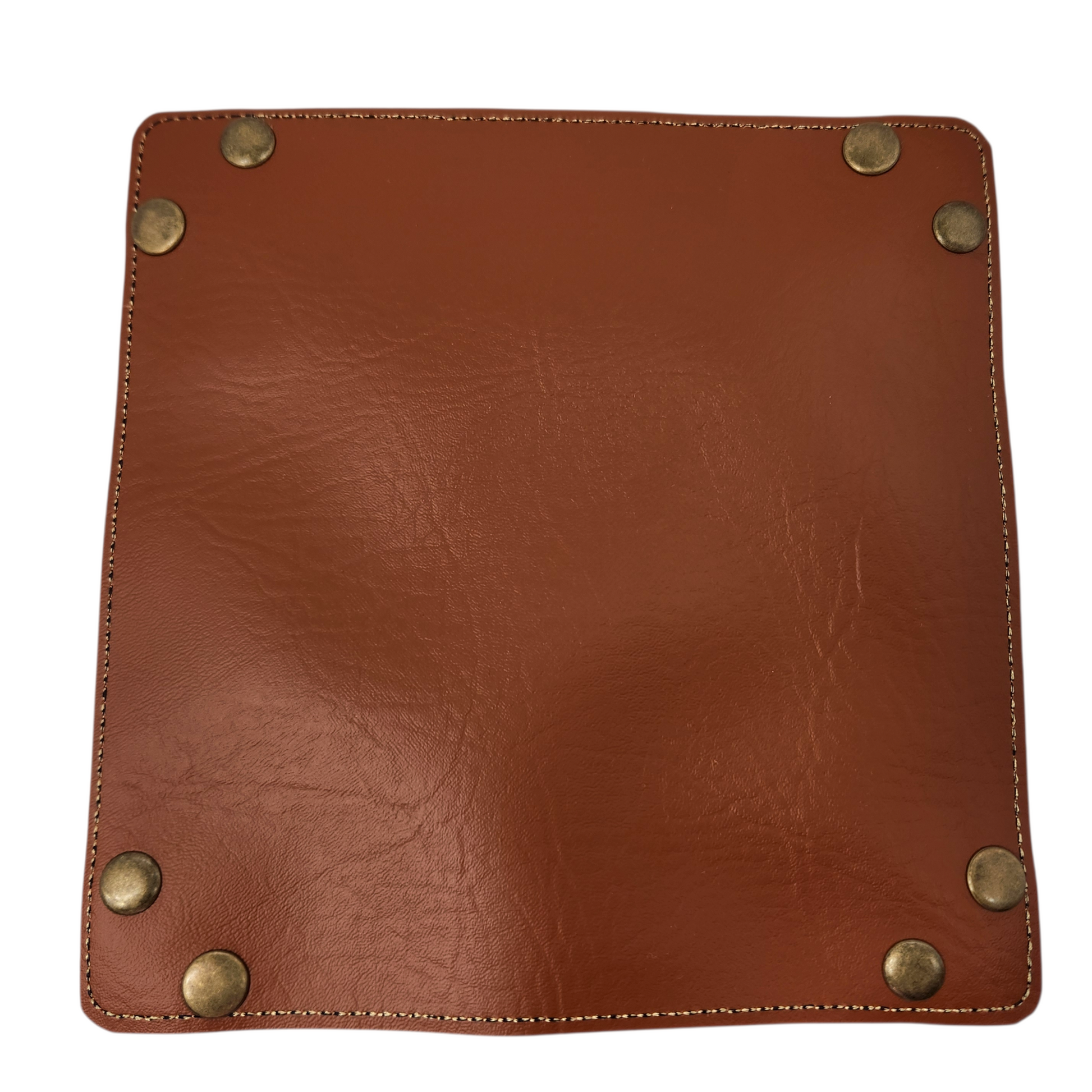 Made with durable wool/rayon felt on the front and a sturdy copper vinyl backing, this tray is designed to withstand all your dice-rolling excitement. Measuring approximately 8" by 8", with a rolling area of about 5.25" by 5.25" and sides that rise about 1" high, it’s the perfect size for all your gaming needs. Snaps securely with metal snaps.