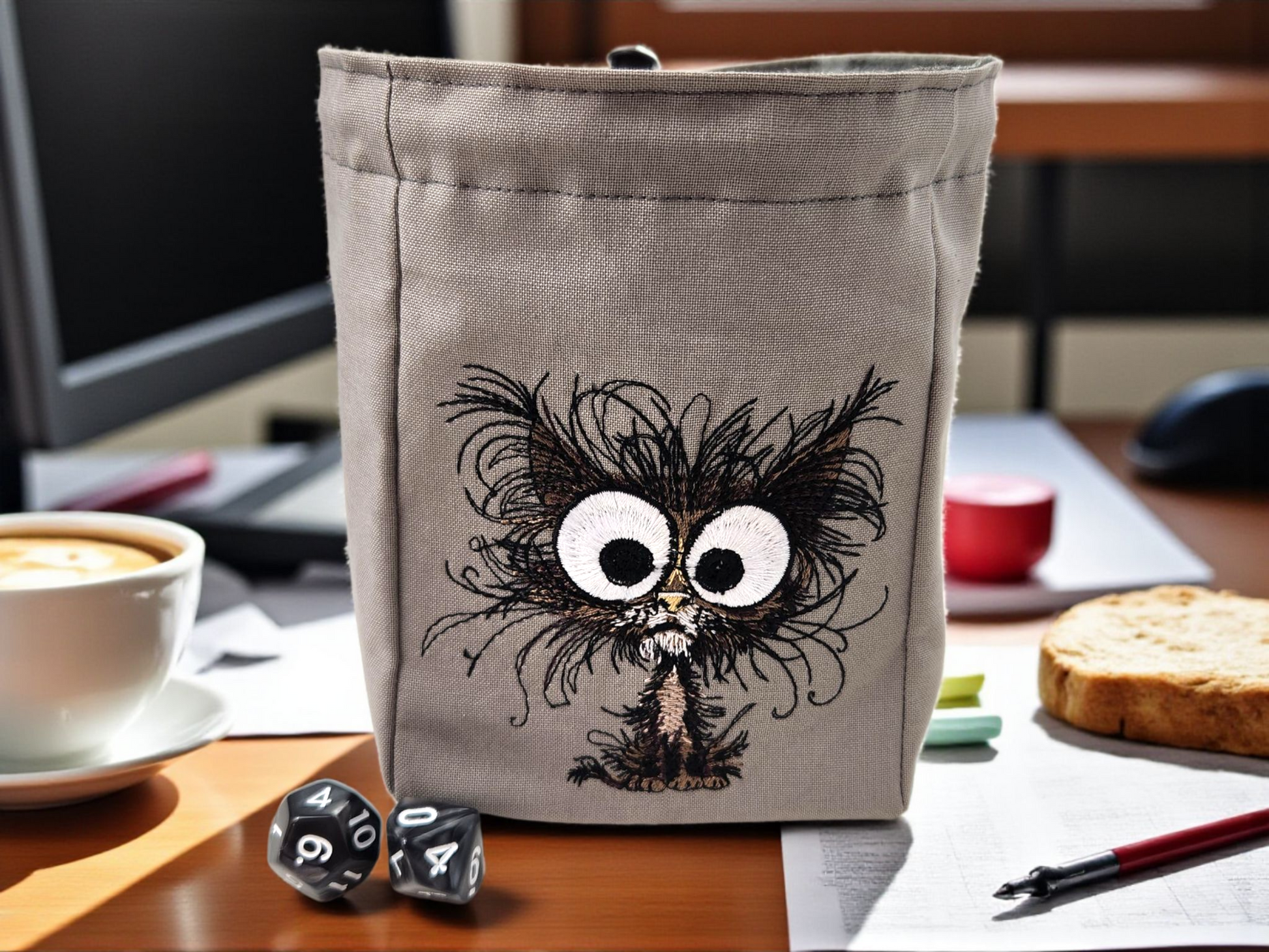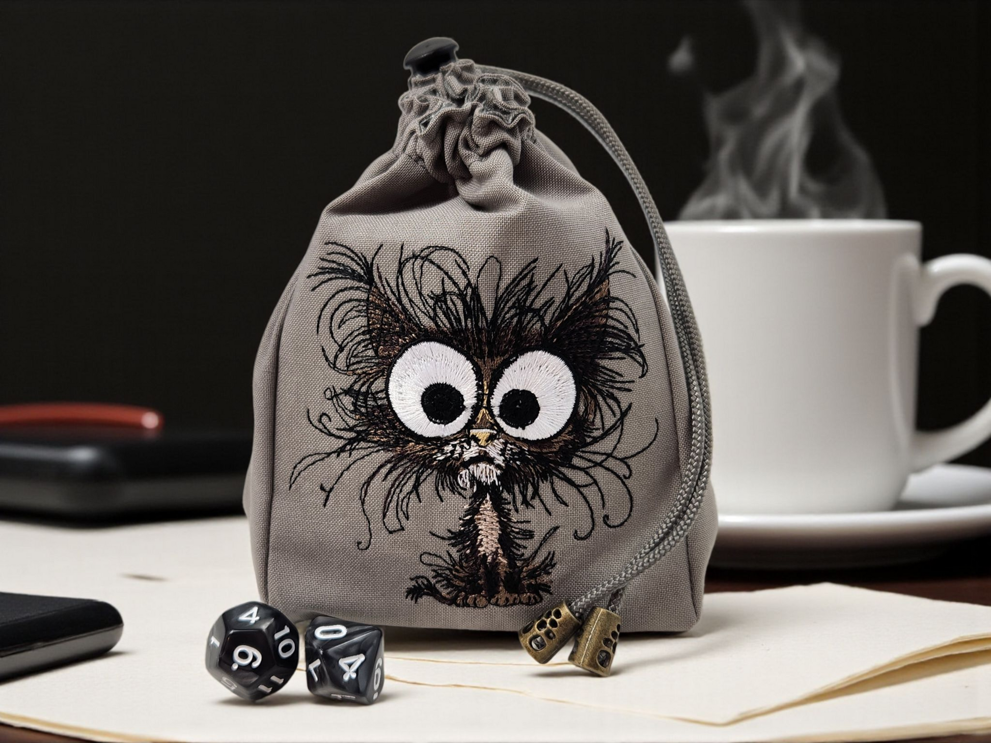 Frazzled cat dice pouch. Looking for an extra-large dice bag to fit your fantastic collection of dice? We have you covered. Bigger than our original bag.