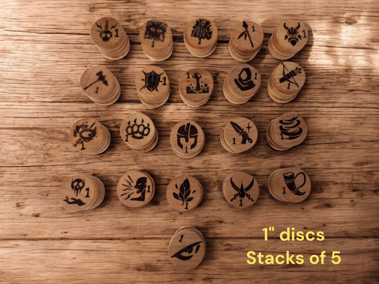 This game token kit is perfect for gamers on-the-go or those with limited storage space! With quality laser engraved images on wooden tokens and protected by non-toxic wood wax, this kit is ideal for after school clubs and beginner tabletop gamers.