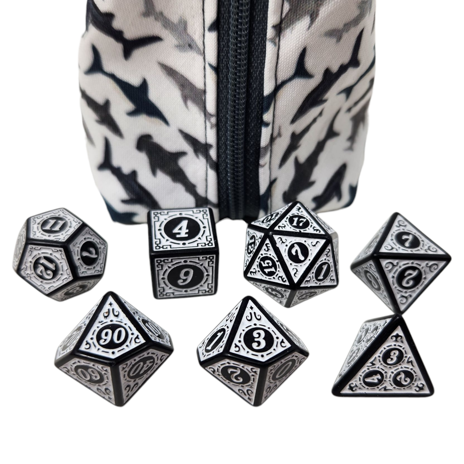 Ready to Play: It comes loaded with a full 7-piece set of white and black dice to get you rolling right away!