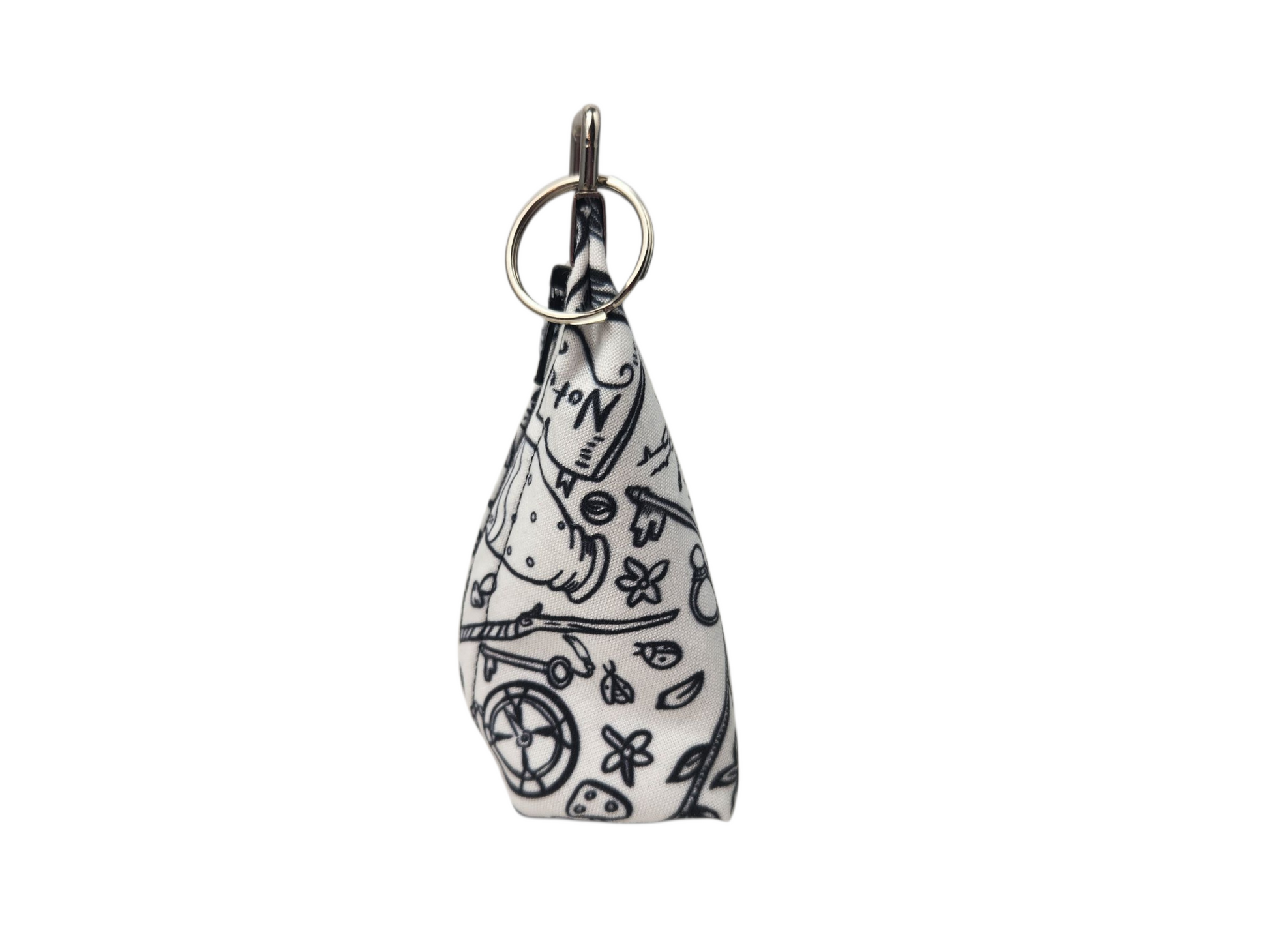 Never be without your dice! This compact zipper pouch is the perfect solution for gamers on the move. Sturdy cotton fabric, a no-fray fully lined interior, and a secure zipper keep your precious polyhedrals safe. It's perfectly sized at 5" from the top of the metal hoop by 3" wide to hold one or two standard 7-piece sets.