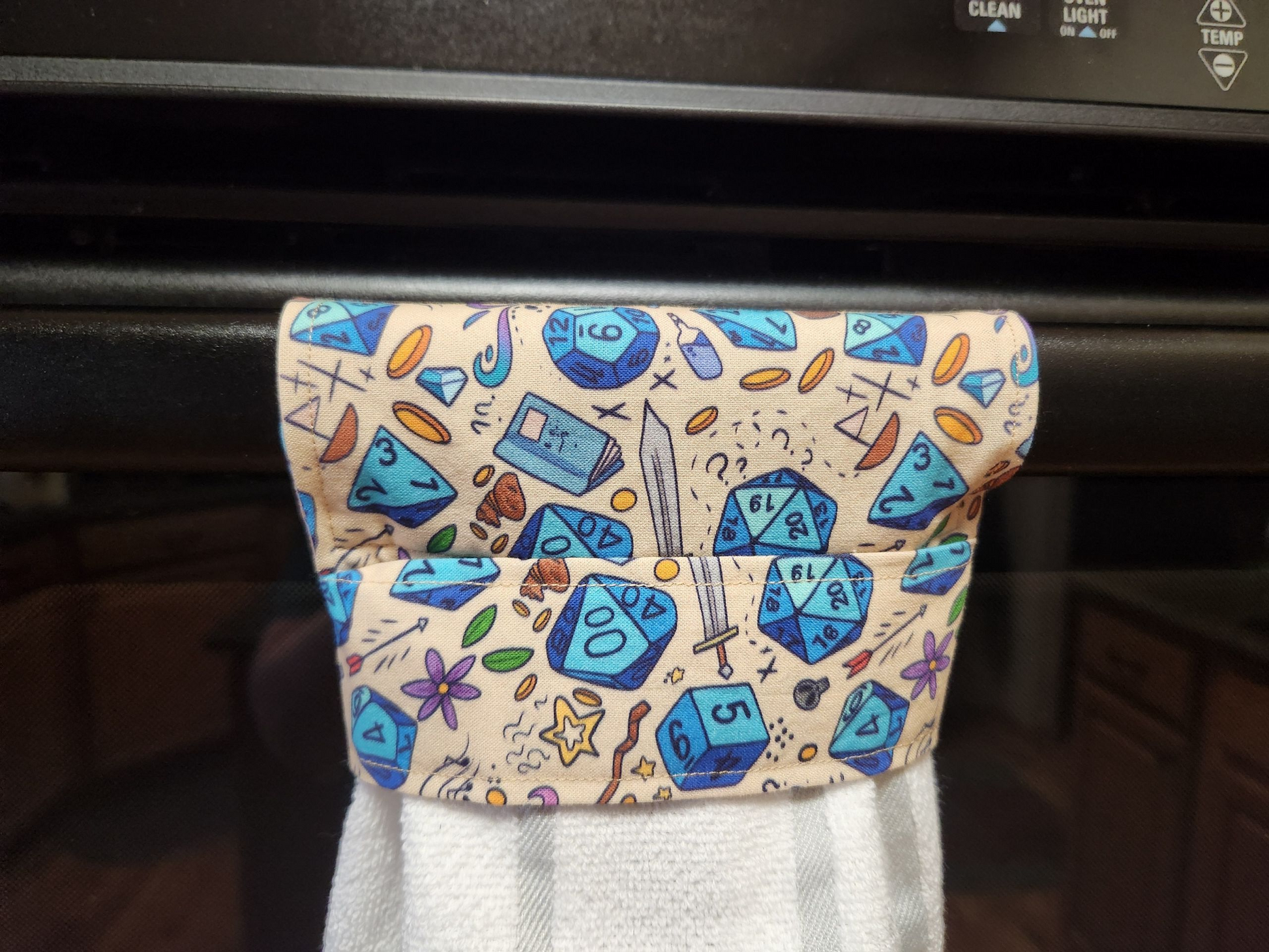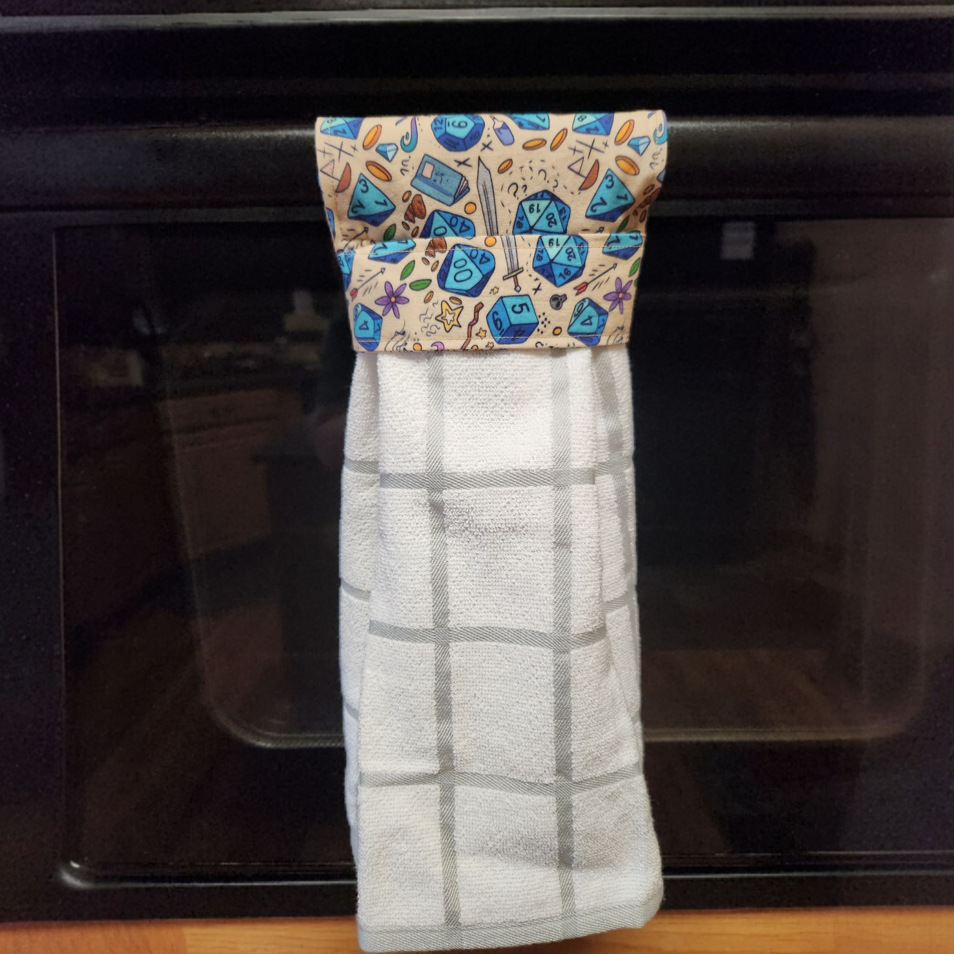Transform your kitchen into a whimsical haven with our unique Hanging Dish Towel, designed especially for TTRPG enthusiasts! This charming towel features an absorbent white towel with soft gray stripes, seamlessly blending functionality with a touch of RPG flair.