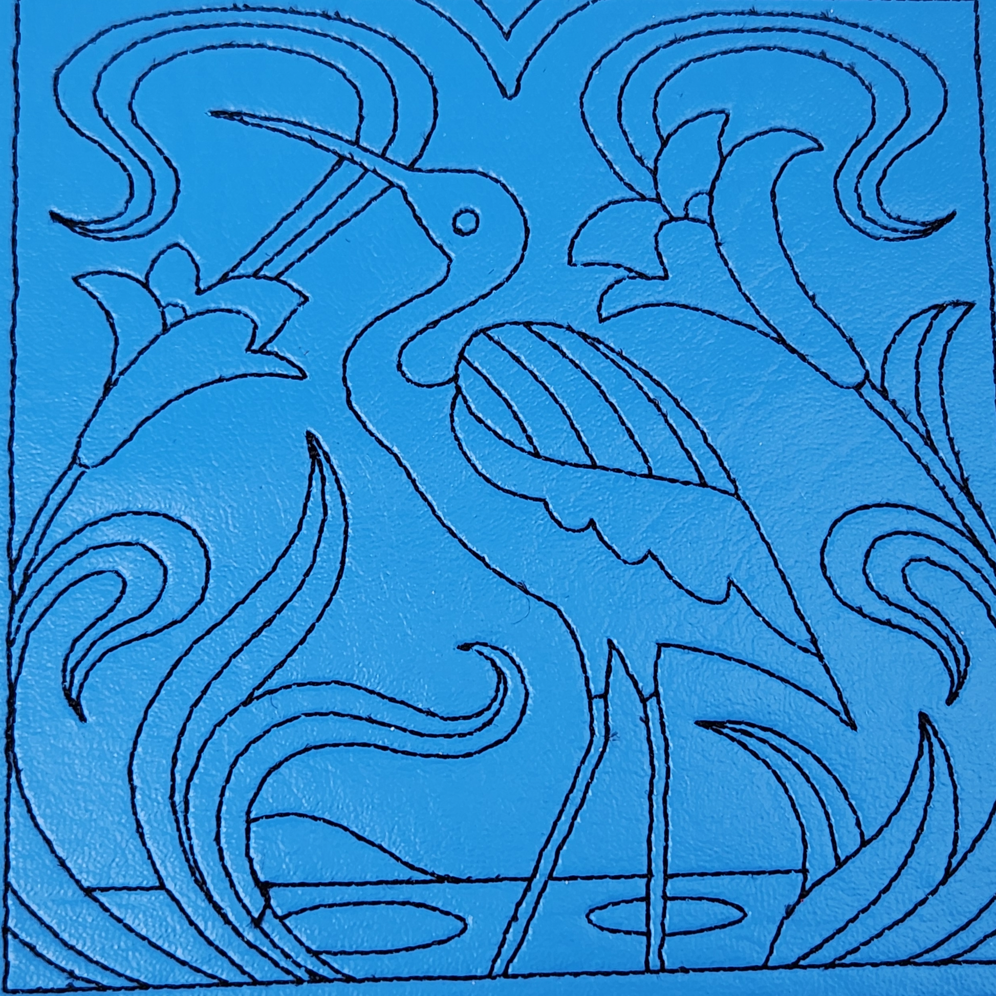 Embroidered dice tray with Heron desgin.