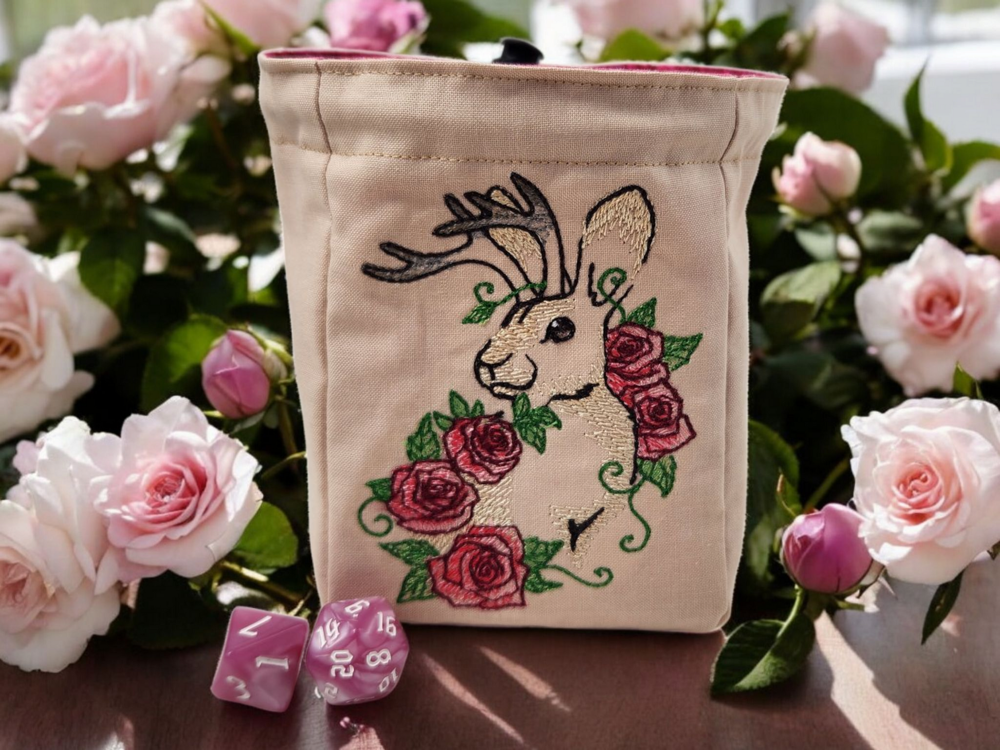 * Handmade dice bag is reversible, and cinches closed with drawstring and cord lock.