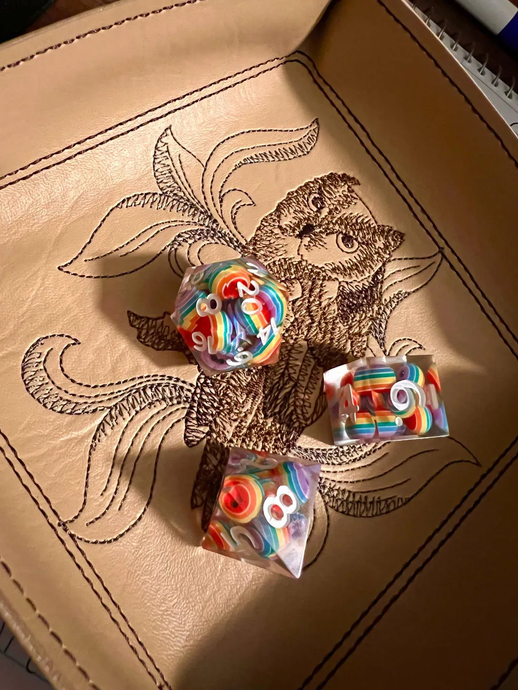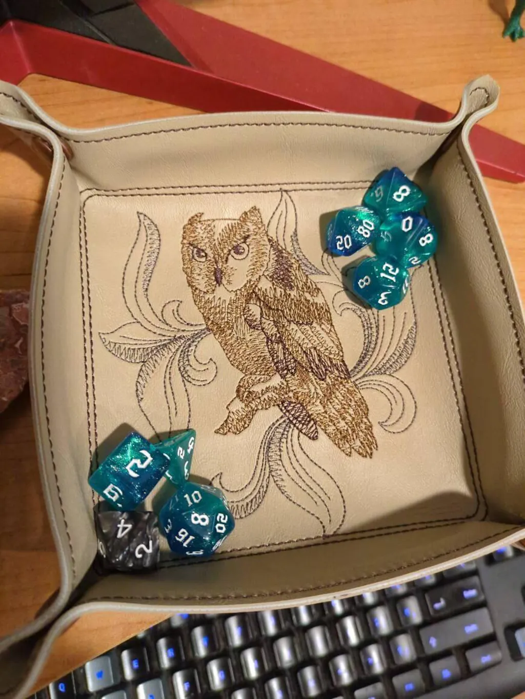 I'm so deeply impressed with this product. I'm always a little wary of trusting the photos of any products but everything is exactly as it is portrayed. Beautiful since tray and lovely dice that complement the colors perfectly.